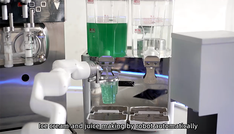 • Ice cream and juice making operated by collaborative robot arm automatically